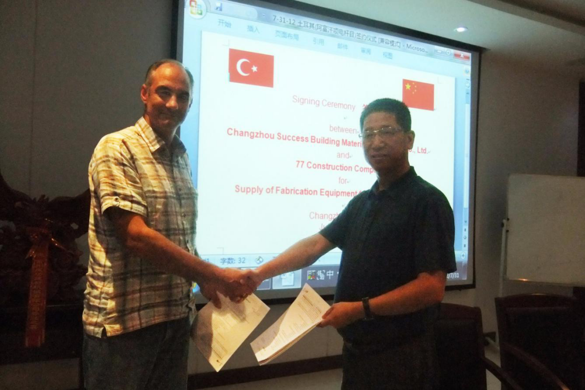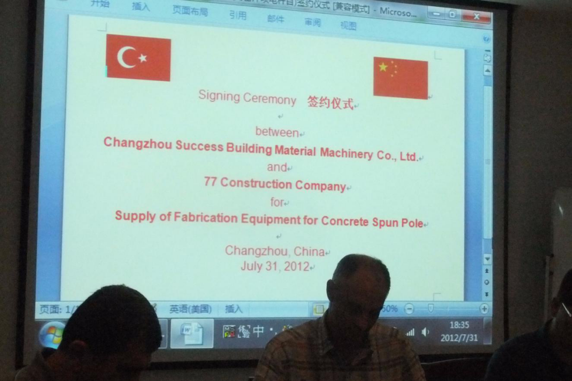 For several months’ negotiation and communication with Turkish customer, we successfully reached an agreement and signed a contract about concrete spun pole equipment with them.